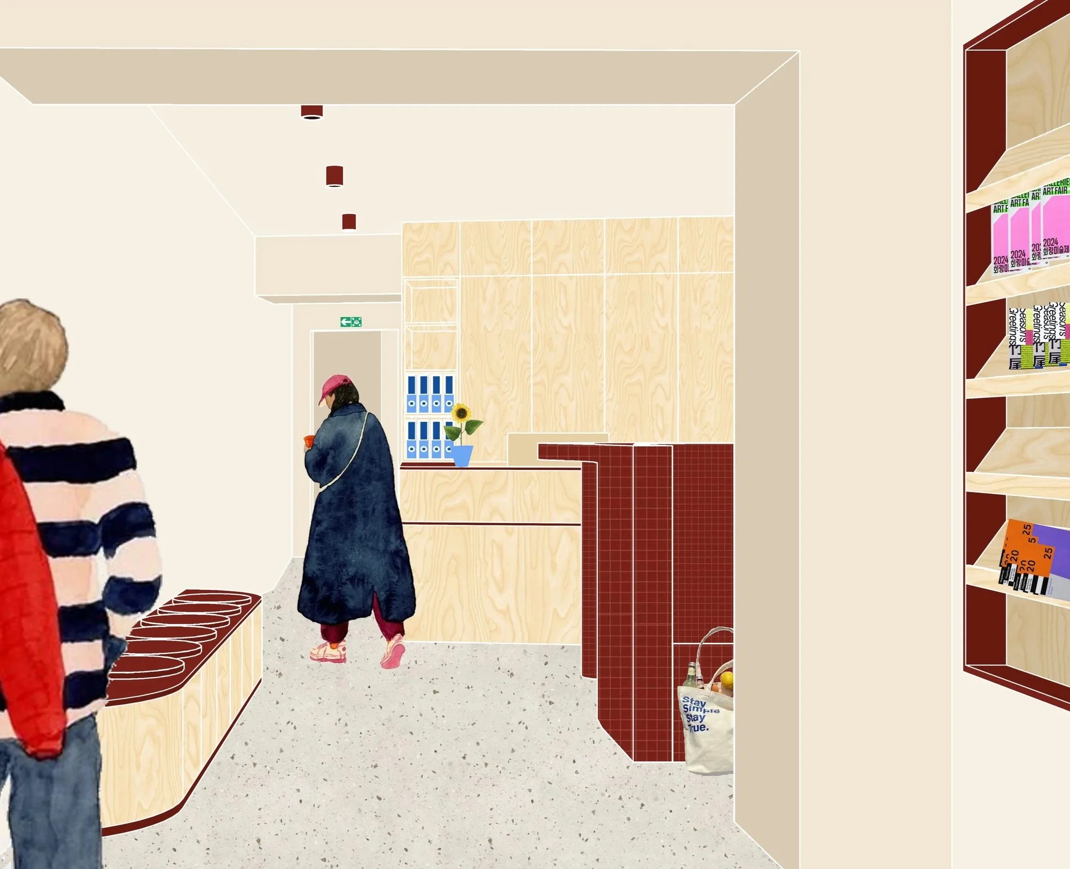 Un soin particulier est apporté à l’atmosphère intérieure. Le projet s’éloigne volontairement des codes impersonnels souvent associés aux équipements publics pour développer un environnement plus chaleureux et accueillant, inspiré de registres domestiques.